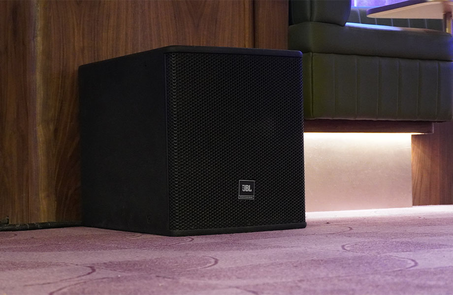 The installation features JBL Control 29AV-1 speakers paired with JBL AC115S subwoofers and the JBL Control 50 Pack, ensuring consistent coverage and enhanced low-end presence throughout the space. Powering the system is the Crown nCDI4X600 amplifier, which offers efficient, high-performance amplification.