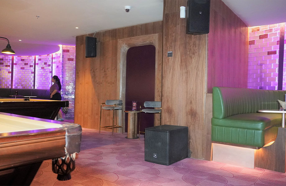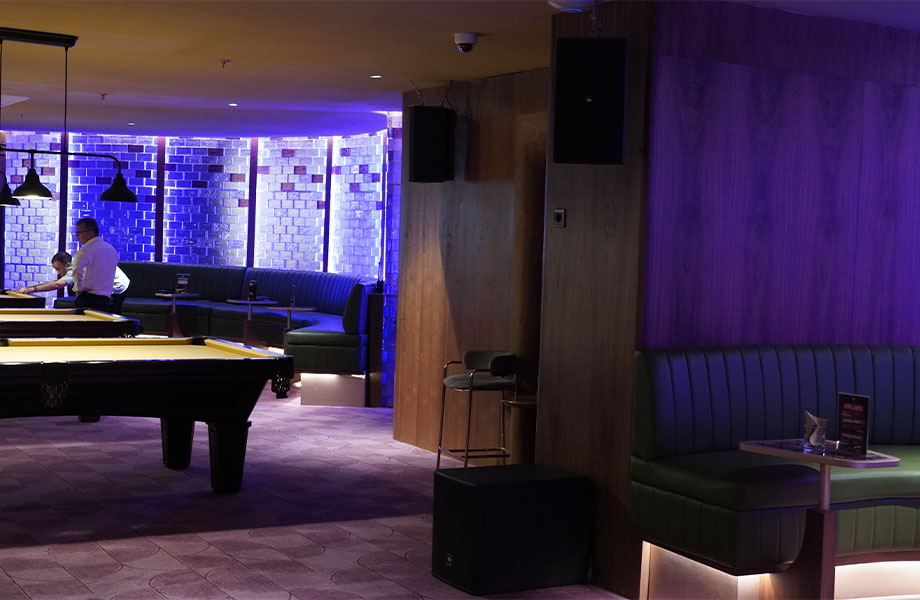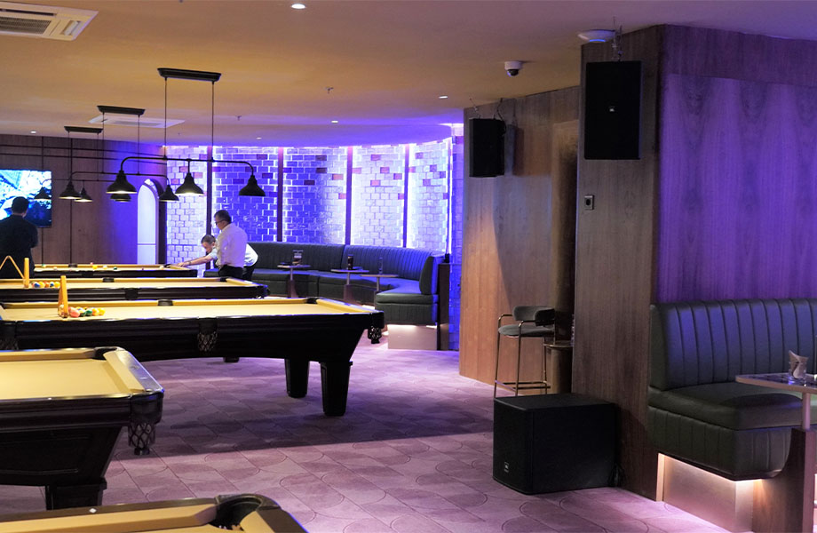 Situated in the Agora Mall complex, Q Billiard offers a more refined yet social entertainment setting, where ambiance and clarity are equally important. The client’s objective was to implement a premium audio system that delivers clear, well-distributed sound while complementing the venue’s stylish and contemporary design.
